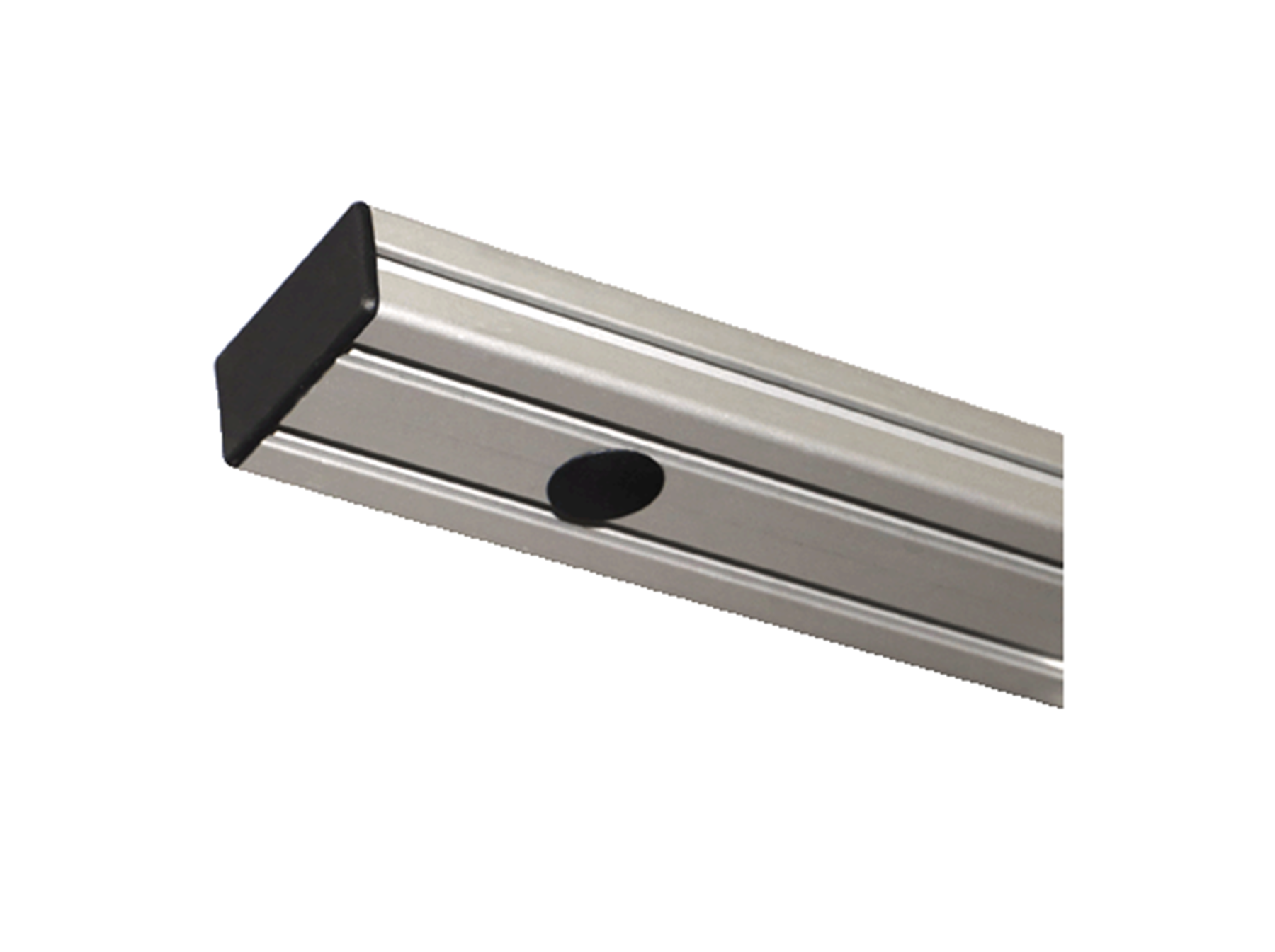 Leichte, eloxierte Profilschiene (Mehrfach-Nut) für variable Aufhängepunkte; Aufhängepunkte stufenlos verschiebbar. Grundlänge 84 cm; kombinierbar mit Marathon-Rollengelenken und Blenden.