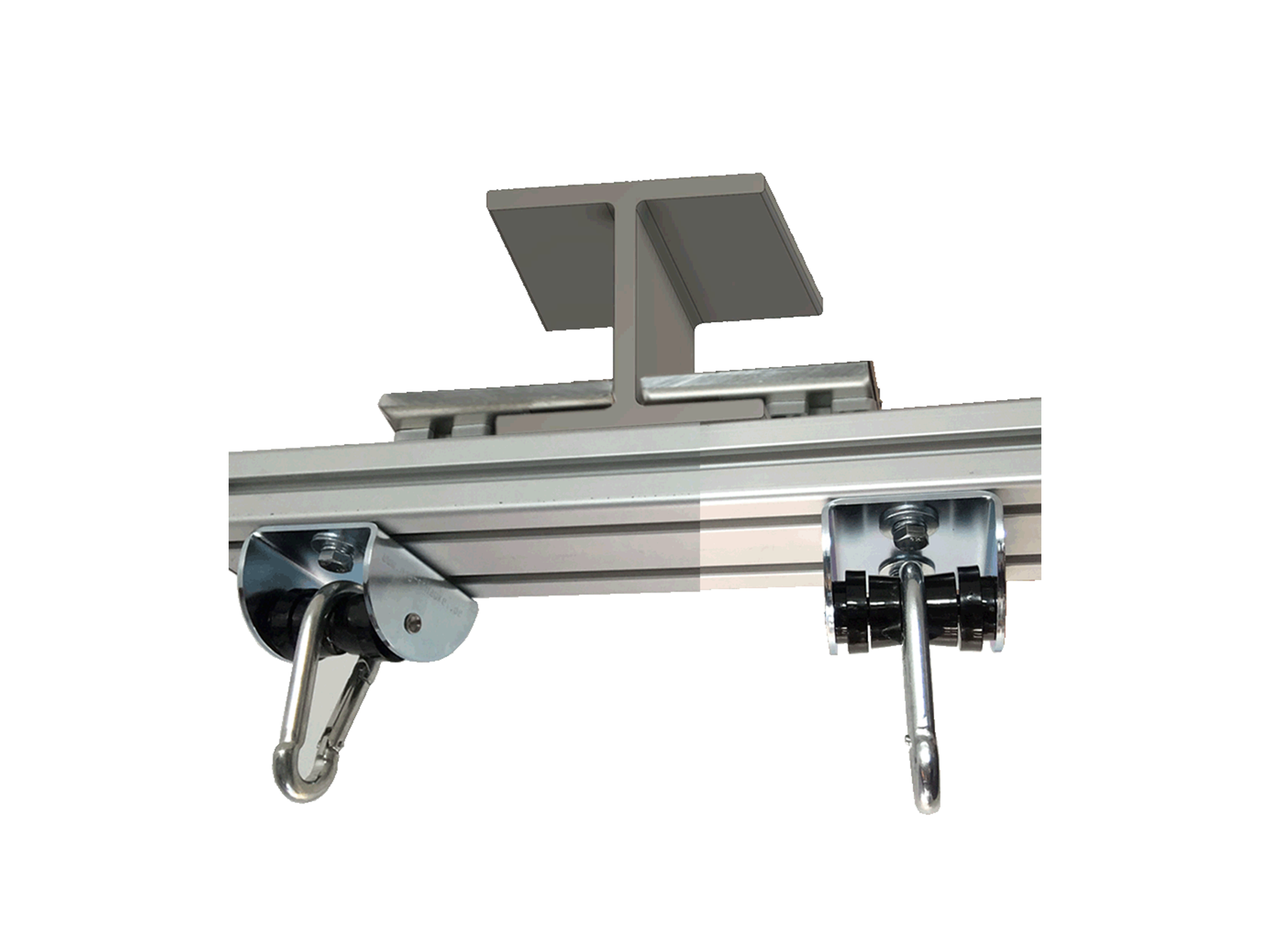 Quer-Klemmschiene inkl. Marathon-Rollengelenk; für kompakten Aufbau. Schienenvariante 15 cm; leiser Lauf, montagefertig mit Schraubenset.