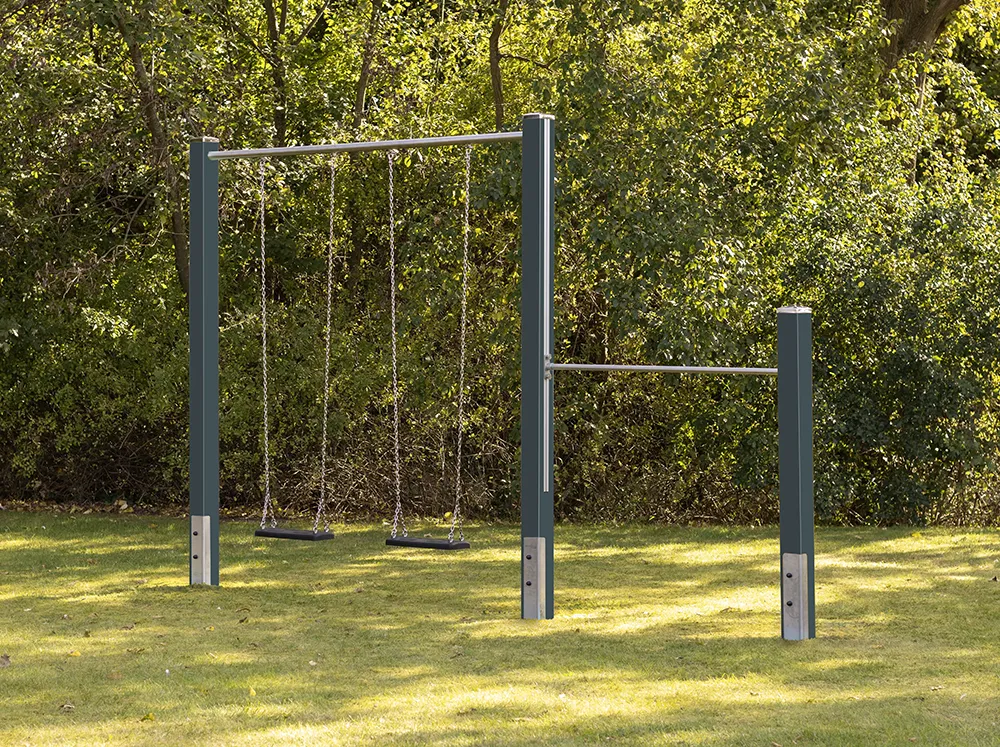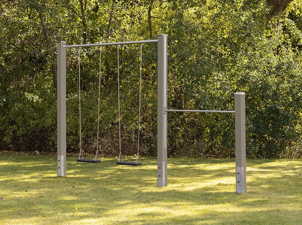 Die Kombination aus Doppelschaukel mit Turnreck gerade vereint Bewegung, Spiel und sportliche Entwicklung in einem klaren, durchdachten System. Während die Schaukel für Leichtigkeit, Rhythmus und gemeinsames Lachen steht, lädt das integrierte Turnreck zu aktiven Übungen ein – vom ersten Hangeln bis zu anspruchsvolleren Bewegungsabläufen. So entsteht ein vielseitiger Bewegungsplatz im eigenen Garten, der Kinder über viele Jahre hinweg begleitet und gleichzeitig Raum für gemeinsames Erleben schafft.