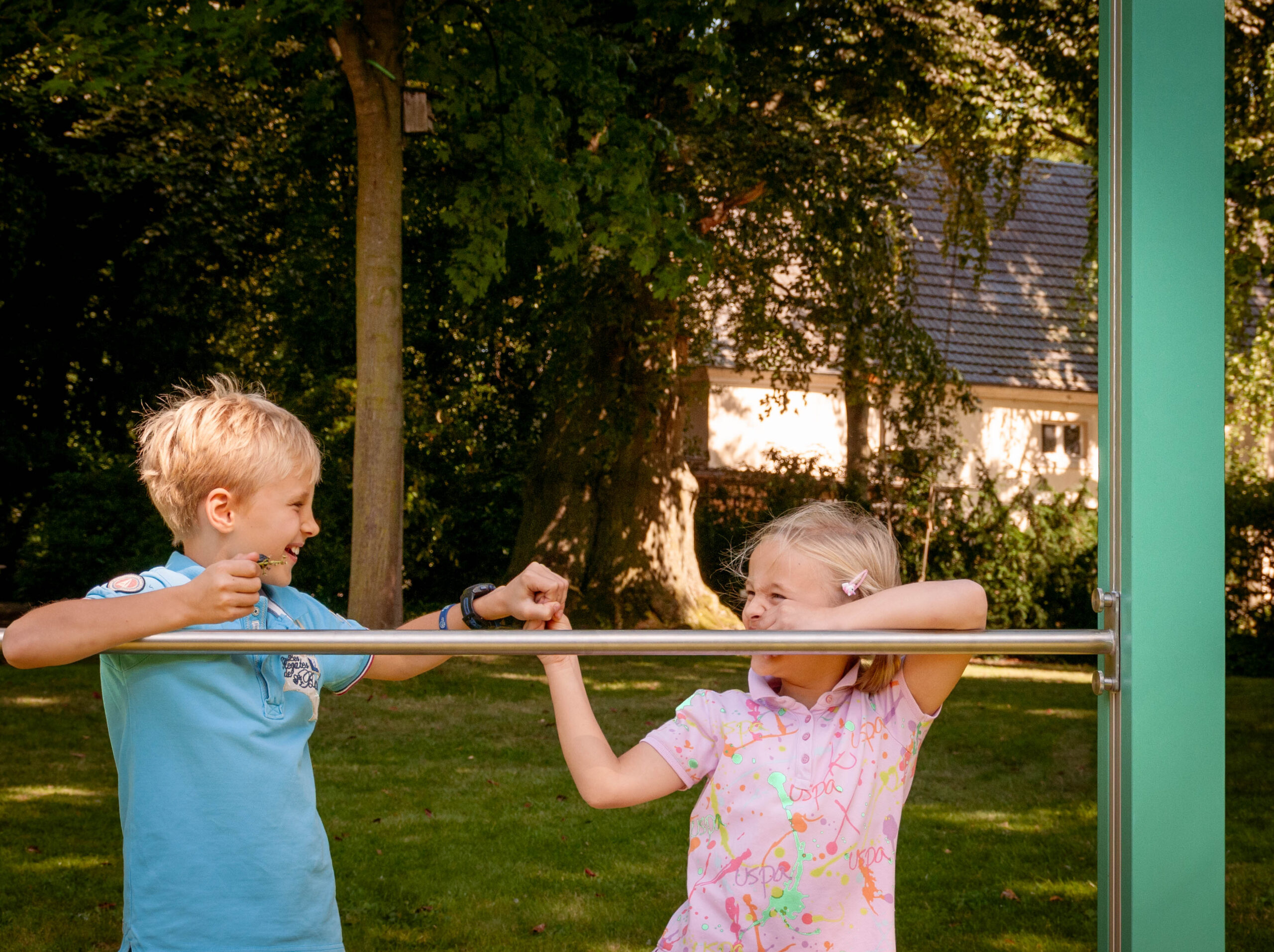 Das Doppelturnreck bietet noch mehr Raum für gemeinsame Bewegung. Ob parallel oder