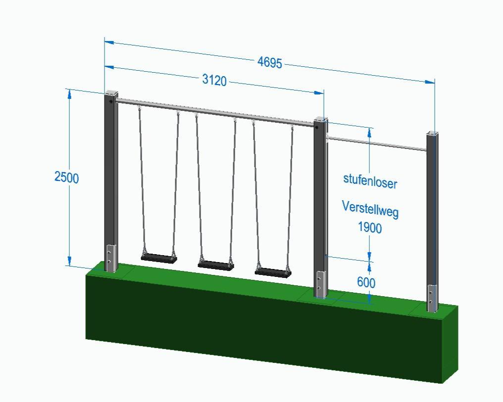 Rohrdurchmesser Schaukelstange: 50 mm oder 60 mm (je nach Ausführung)