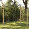 Die Einzelschaukel mit Turnreck im 90°-Winkel aus lasierten Leimbindern Lärche bringt Dynamik und Struktur in den Garten – jede Variante schafft einen vielseitigen Bewegungsplatz, an dem Kinder schaukeln, hangeln und neue Fähigkeiten entwickeln können.