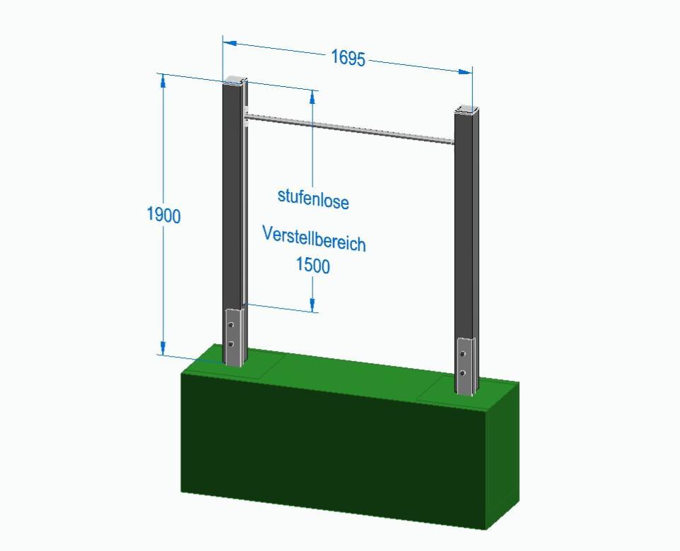 Ein zentrales Merkmal unseres Einzelturnrecks ist die stufenlose, werkzeugfreie Höhenverstellung. Die Reckstange lässt sich flexibel anpassen – schnell, unkompliziert und exakt auf die jeweilige Körpergröße abgestimmt.