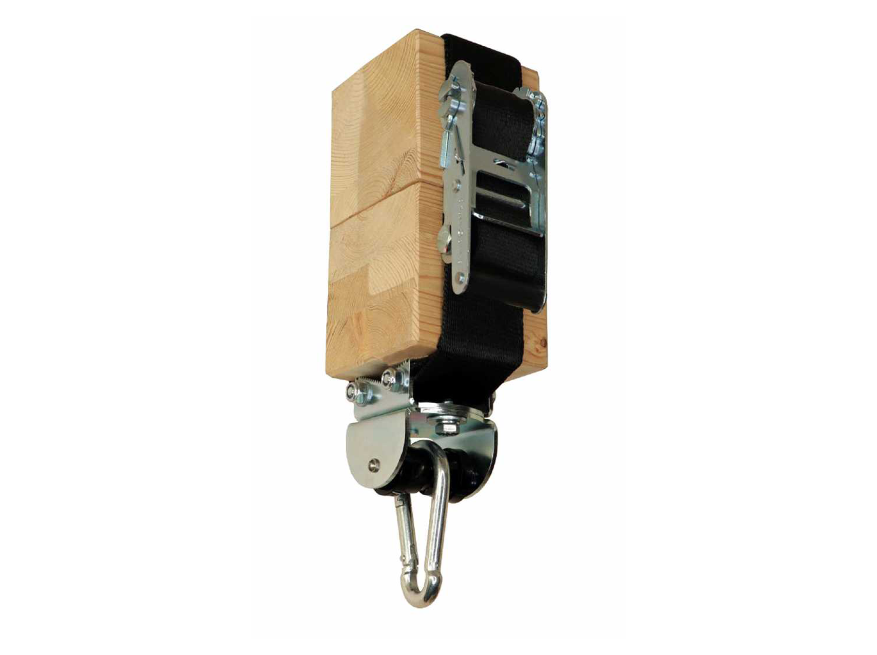 Bandschellen mit Marathon-Rollengelenk für Balken/Äste/Träger, wenn nicht gebohrt werden darf. ZAK-Adapterplatte und Spanngurt mit Ratsche sorgen für festen Sitz; Polyesterband (hochfest).