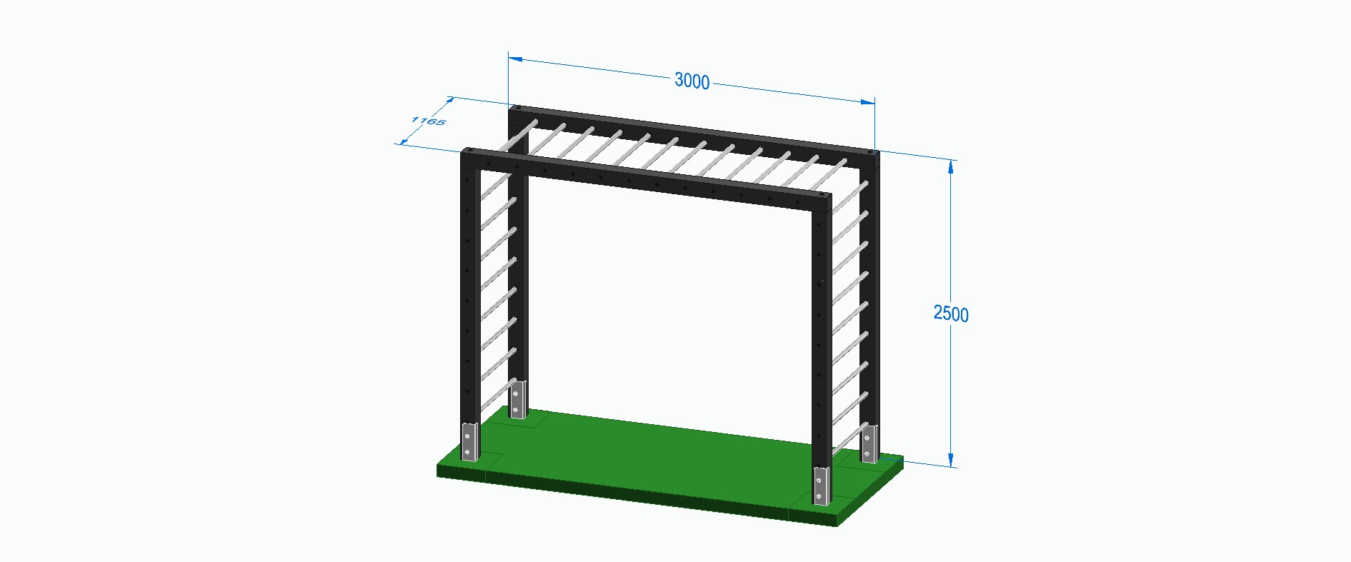 Mit einer Länge von 3000 mm und einer Breite von 1165 mm bietet das Grundmodul eine kompakte, aber vielseitig nutzbare Basis für aktive Spielbereiche. Das Klettergerüst schafft Raum für Bewegung, Koordination und Spiel in Ihrem Garten. Gleichzeitig bleibt es offen für spätere Erweiterungen, zum Beispiel mit passenden Zusatzmodulen.