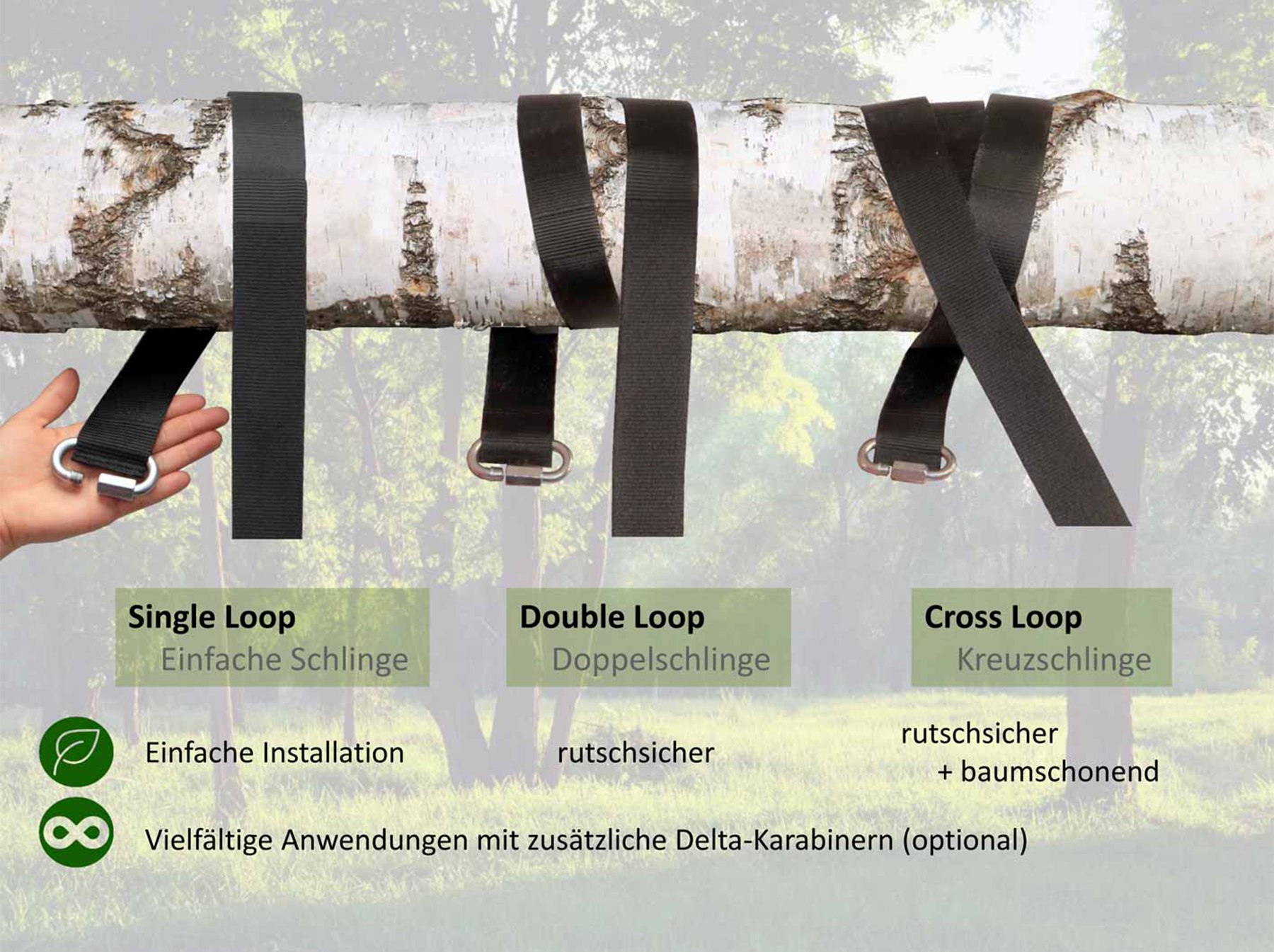 Für eine Schaukel, Mehrkindschaukel oder Relaxschaukel werden zwei Aufhängepunkte benötigt.