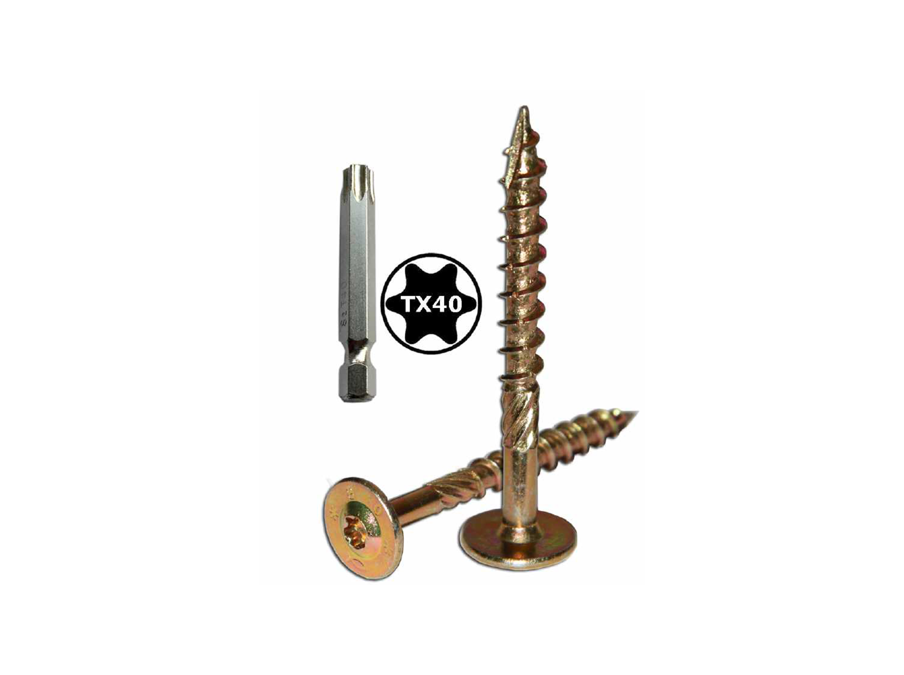 2 Pan-Head-Schrauben 8 x 100 mm inkl. Torx T40 Bit; für Marathon-Direktmontage am Holzbalken.