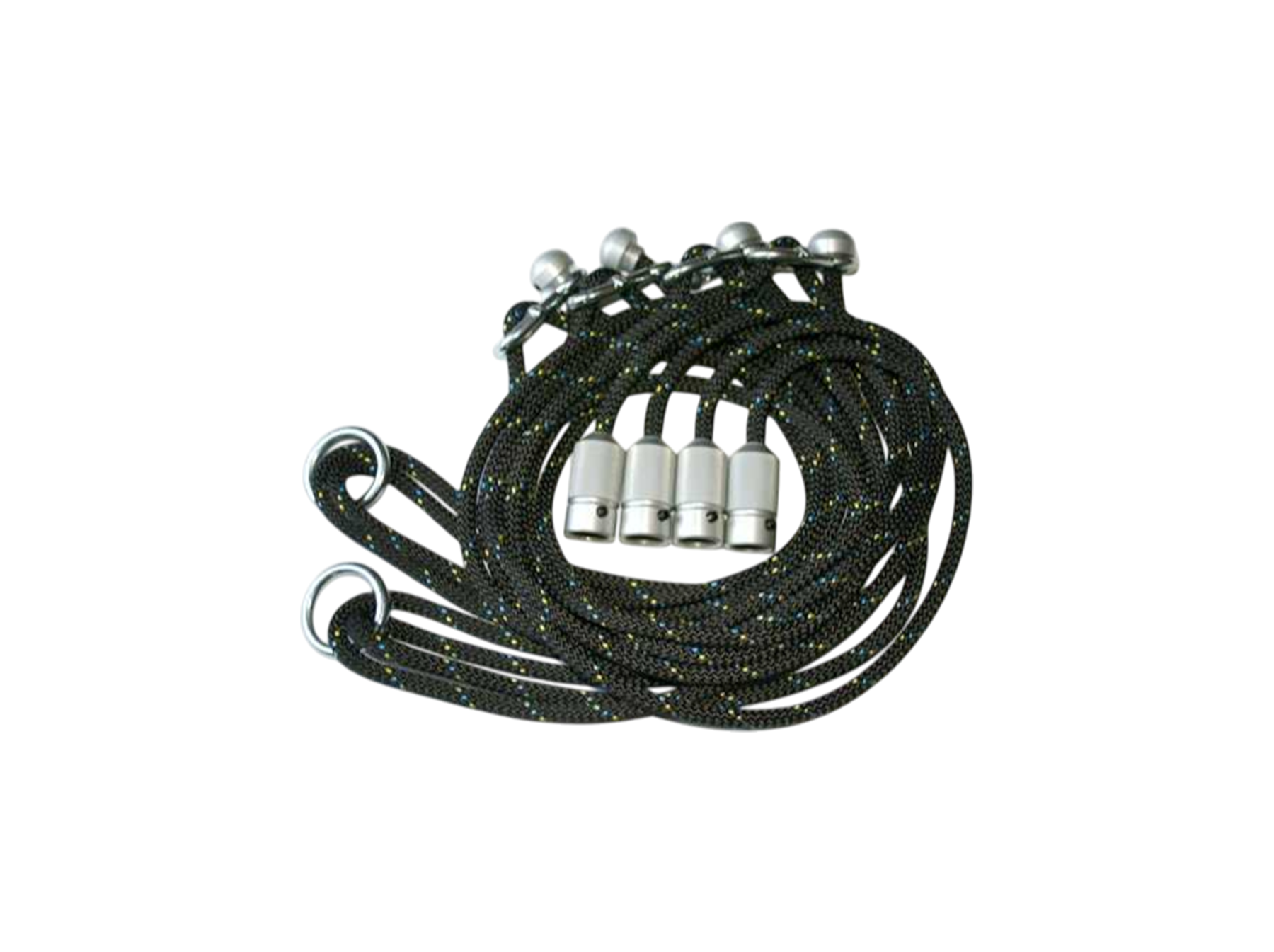 Professionelles Seilset für Plus-Produkte, Education und Challenger. 10-mm Polyester-Multifil-Seile, UV-stabil und thermofixiert, mit Sicherheitsverschraubung; inkl. Stellachten und Schaukelringen.