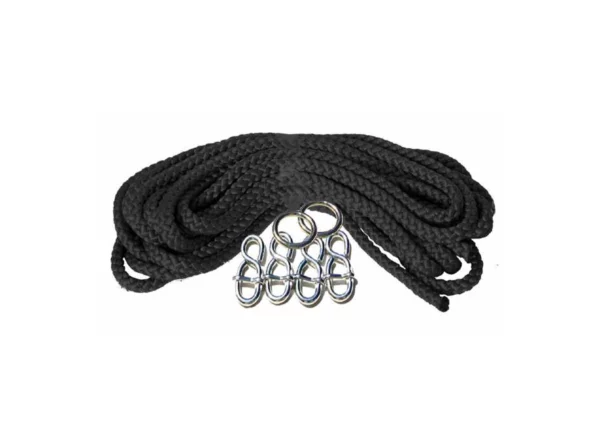 2-Punkt-Aufhängeset aus 10-mm Polypropylen-Seilen, höhenverstellbar. Passend für Relaxschaukeln LifestyleStandard und Dreamliner Standard; optional Karabinerhaken AKH.8 zum schnellen Ein-/Aushängen.
